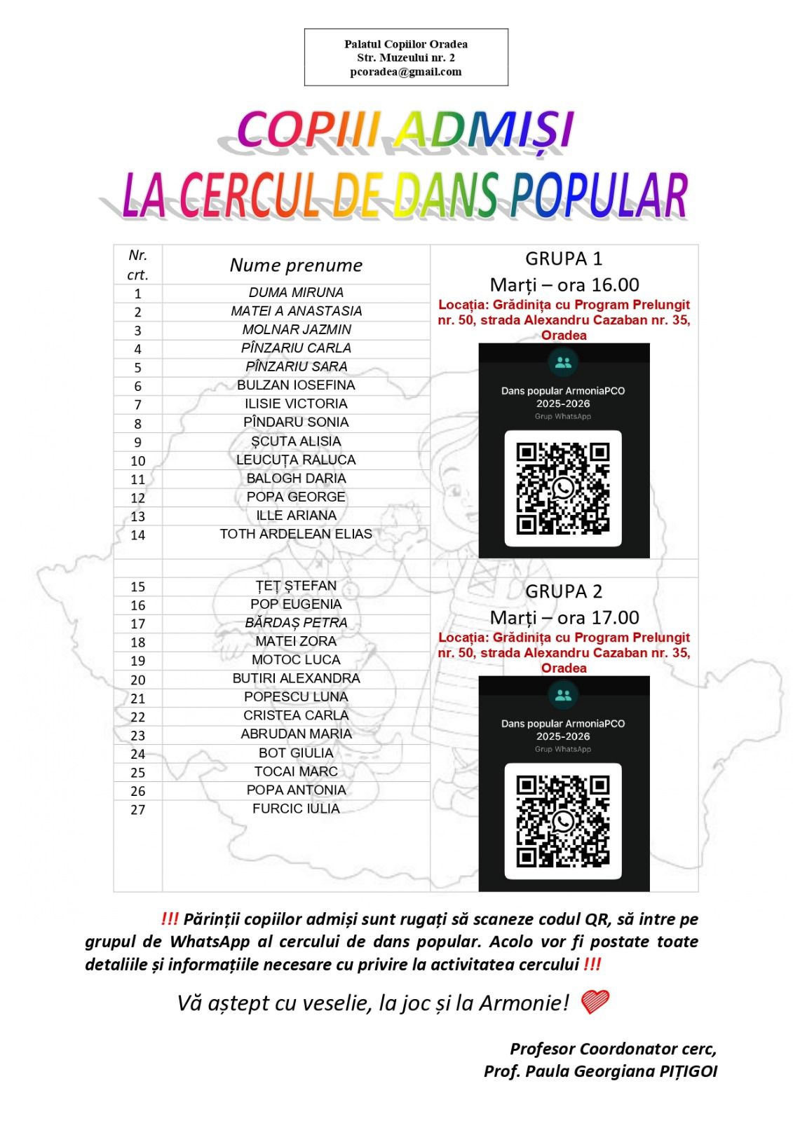 PROGRAMARE SELECȚIE - CERCUL DE DANSURI POPULARE