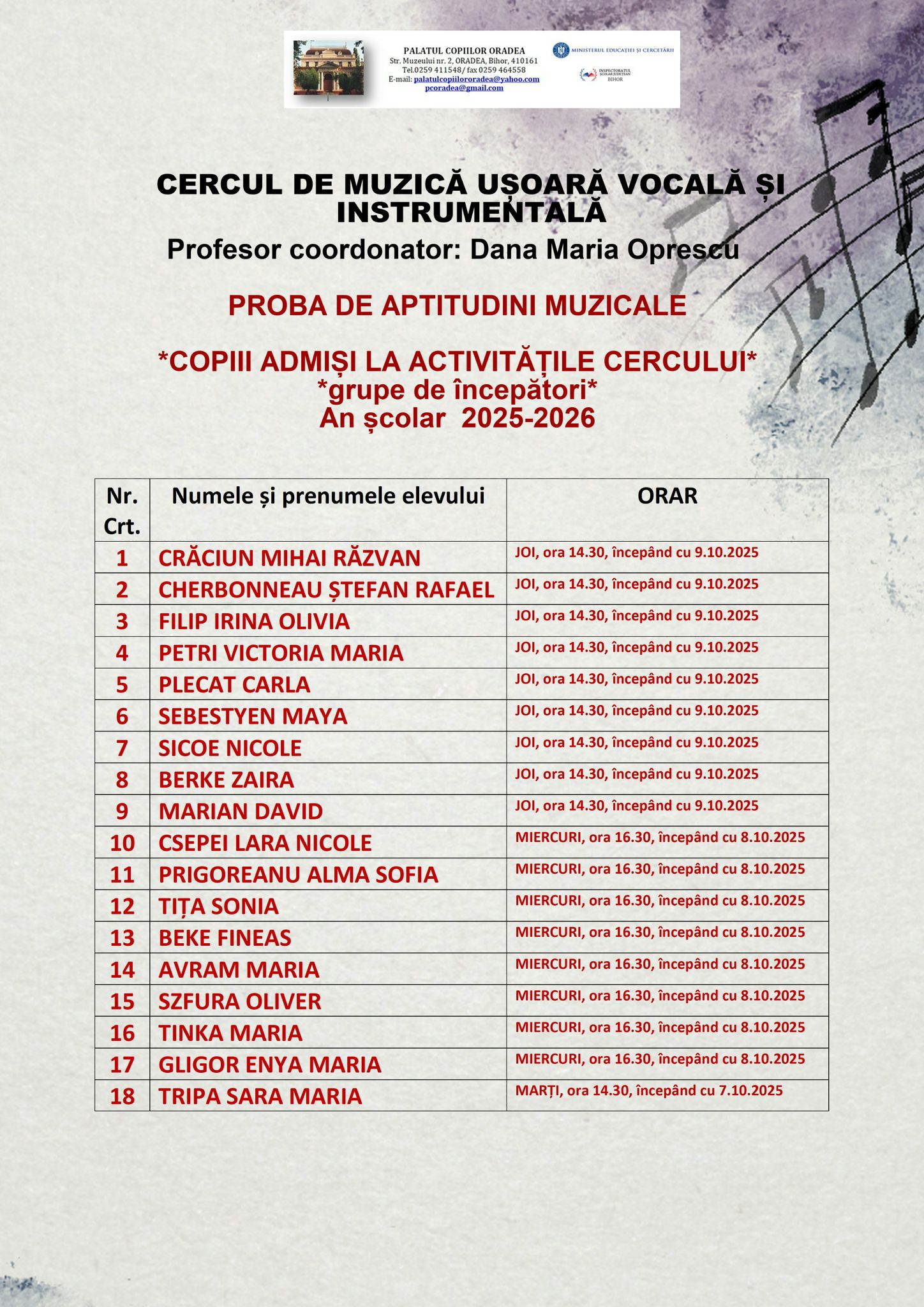 Cu siguranta, acesta este motto-ul care se potriveste foarte bine copiilor care aleg sa urmeze cursul de canto-muzica usoara din cadrul Palatului Copiilor Oradea.