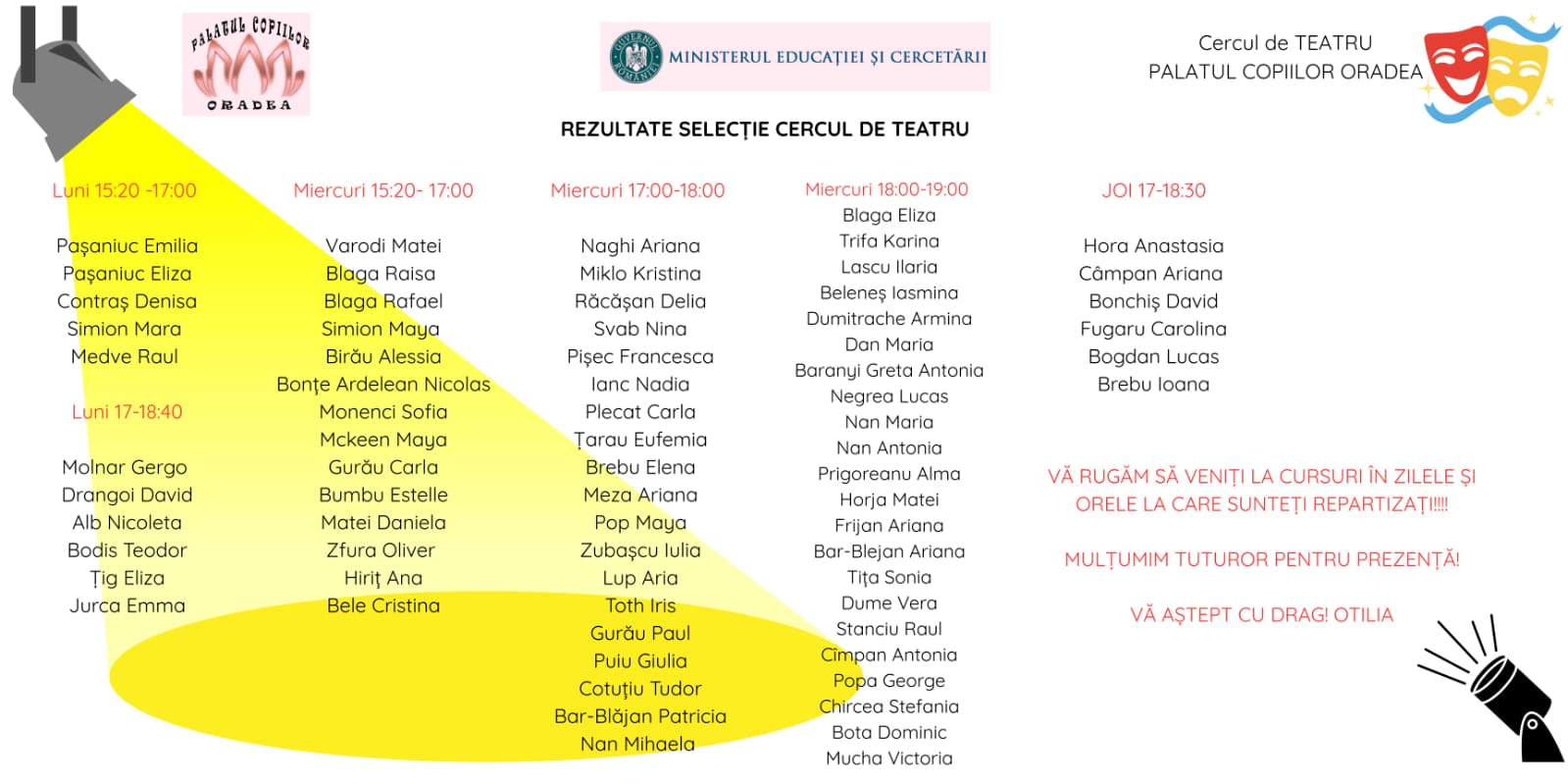 Cercul de Teatru din cadrul Palatului Copiilor Oradea, își propune an de an să bucure copilașii care-i trec pragul.