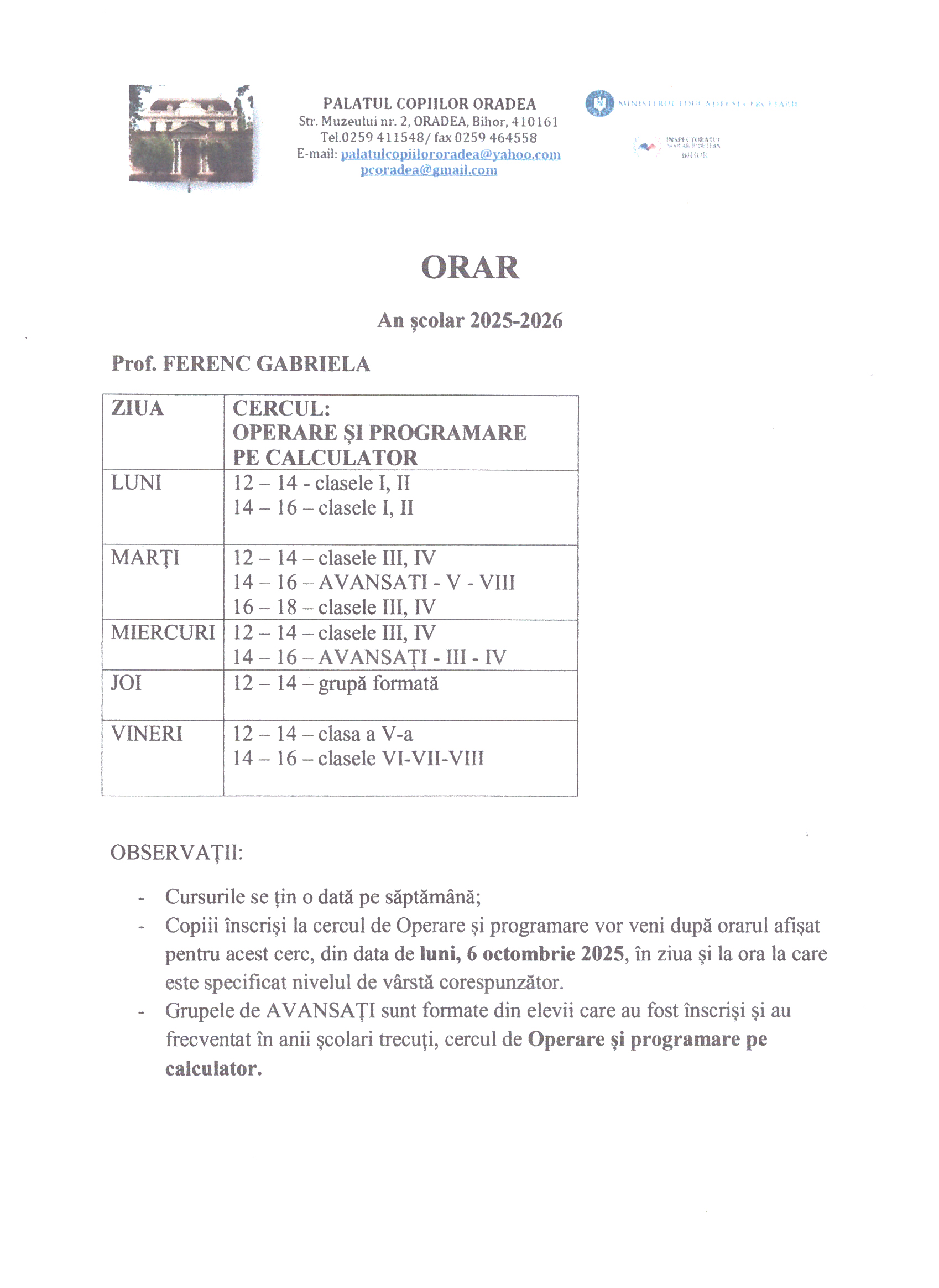 Deşi cercul pe care-l coordonez se numeşte Operare si Programare pe calculator, o mare parte din activitate se axează pe utilizarea calculatorul şi a produselor soft existente pe piaţă.